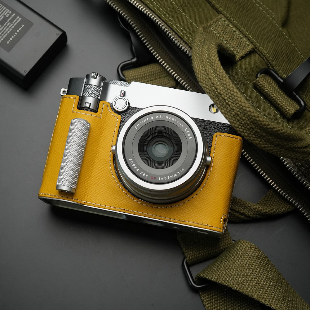 【受注生産】富士フィルム GFX100RF用 本革ケース クラシック メタルグリップ付 ビビッドイエロー Mr.Stone