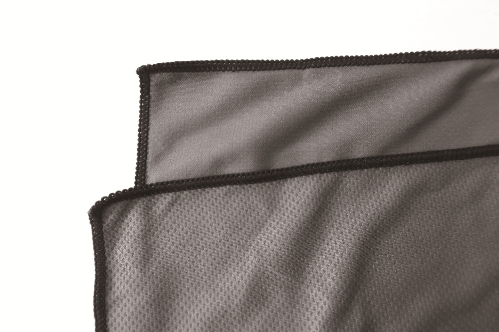 水に濡らして振ることで生地表面温度が下がり、クーリングタオルとしてもお使いいただけます。