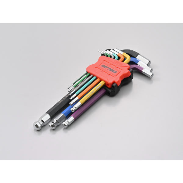 サイズ別に色分けされているので、使いたいサイズがひと目でわかるL型の六角レンチセット。