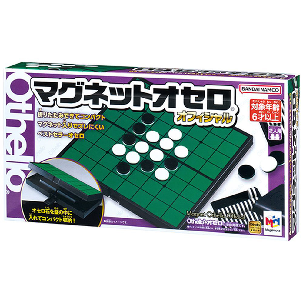 オセロ石はマグネット入りで盤からズレにくく、盤は石ケースを2つ入れて折りたためて一式コンパクトに収納できます。