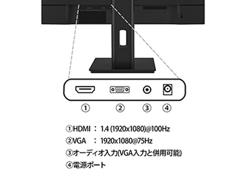 ■インターフェイスはHDMI1.4端子(100Hz)を1つとVGA端子(75Hz/オーディオ入力と併用可能)を1つ搭載しています。VGA端子を搭載していますので以前から使用しているPCなどとの接続も可能です。