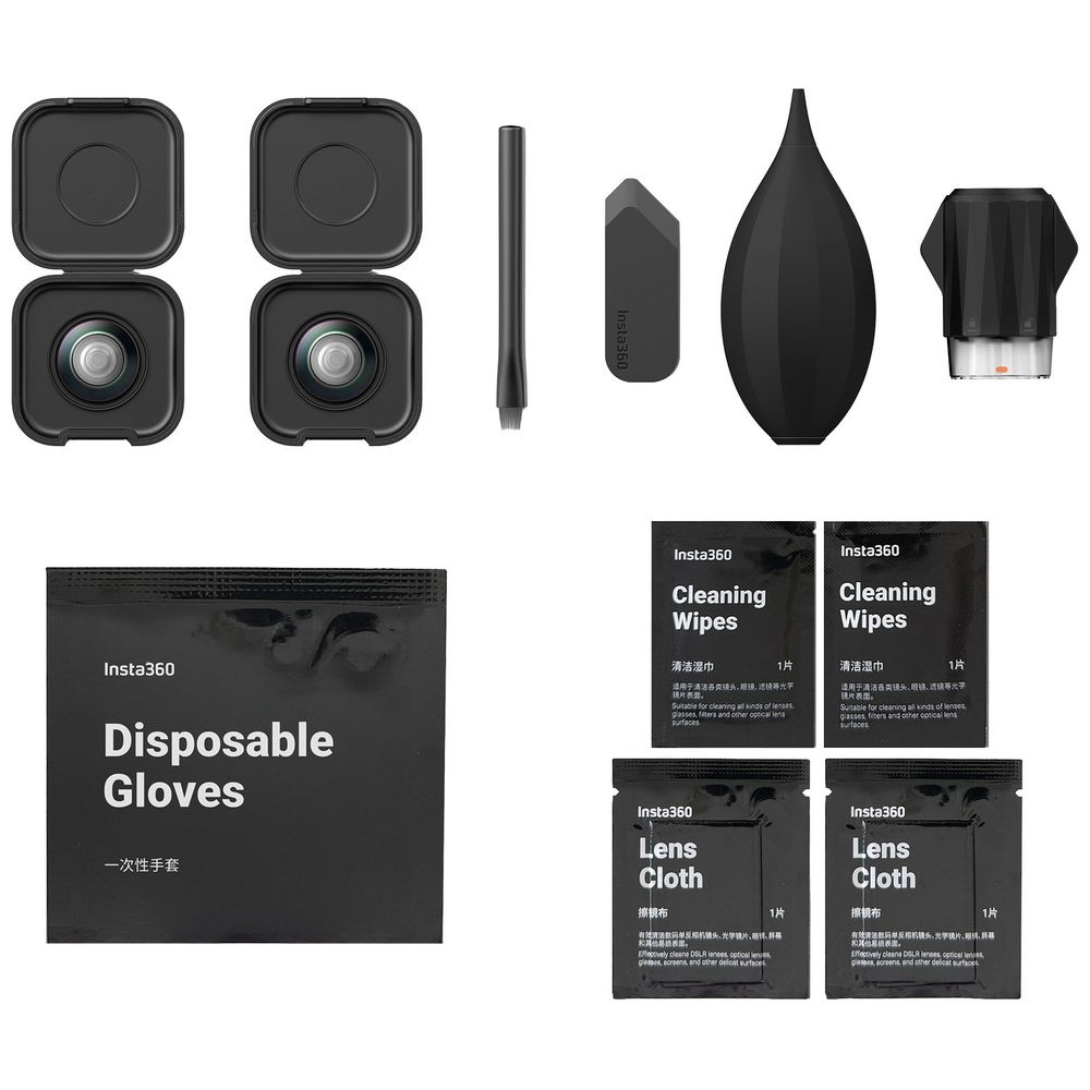 Insta360 X5用の純正交換レンズ2枚と、ご自宅でのレンズ交換やクリーニングに必要なツール一式が付属します。