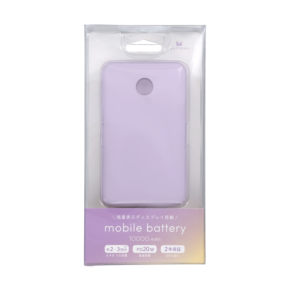 モバイルバッテリー 10000mAh 残量表示ディスプレイ PD20W入出力 PSE適合製品 ケーブル付属 2年保証 ペールアイリス MOT-MB10005-PU [USB Power Delivery対応 /2ポート]