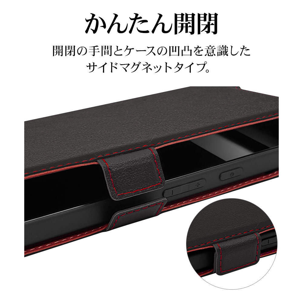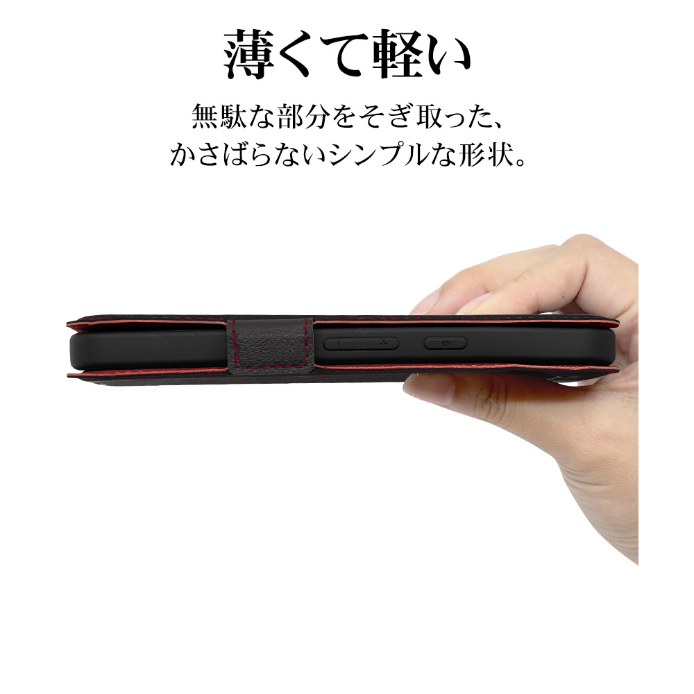 本製品は液晶画面側と背面側の両面を保護できる薄型で持ちやすい手帳型ケースです。