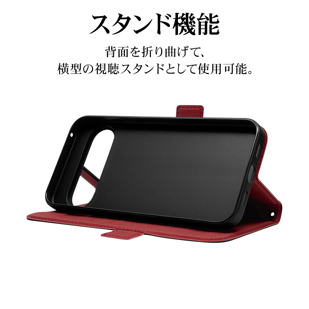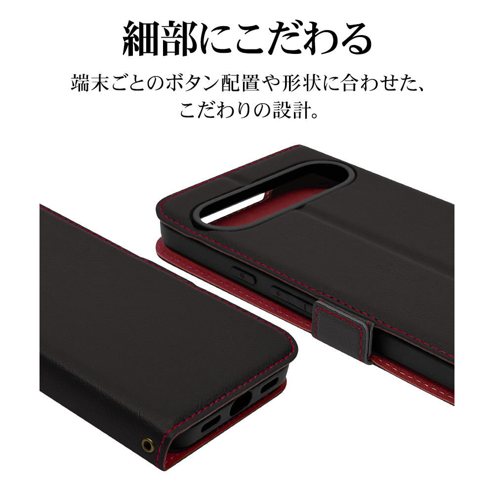 Google Pixel 10/10 Pro 薄型手帳サイドマグネットケース ブラック×レッド 9131P10BSMBKR