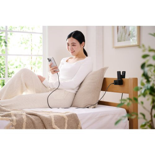 充電器を常設できないテーブルなどに一時的に設置することも可能です。リビングでのテレワークや宿題の際、また就寝時にベッドに挟んで手元で機器を充電できるため、非常に便利です。