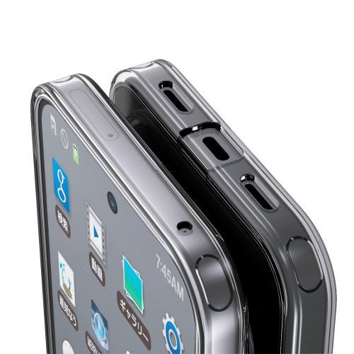 側面には弾力性のあるTPU(熱可塑性ポリウレタン)素材を、背面には強じんで透明度の高いポリカーボネート素材を使用した、スリムなスタイルのハイブリッドケースです。側面は強じんな耐久性としなやかな弾力性をあわせ持つ、TPU(熱可塑性ポリウレタン)素材のフレームが保護します。背面は高硬度5Hの軽くて丈夫なポリカーボネート素材を採用しています。