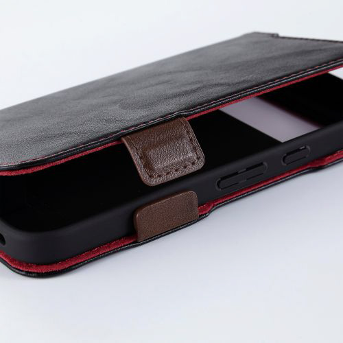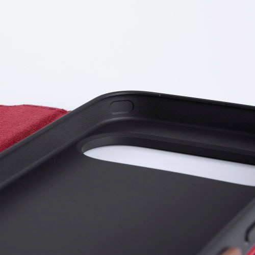 横開きタイプのフラップは内側が起毛となっていて、不使用時の画面を保護します。