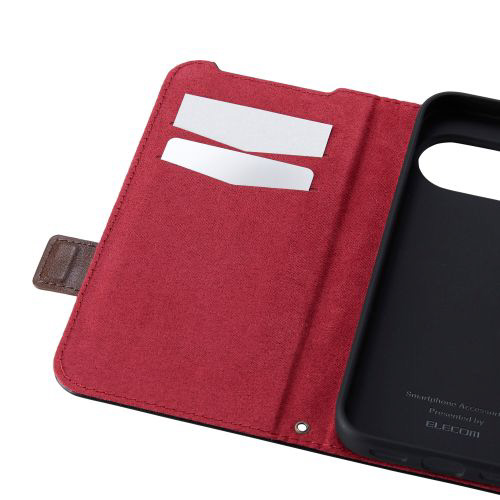 便利な機能を搭載した、革のような柔らかな風合いの手帳型ケースです。