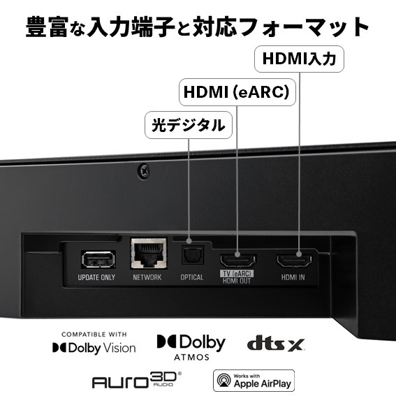 ■テレビとケーブル1本で接続できるeARC対応のHDMI出力端子を搭載