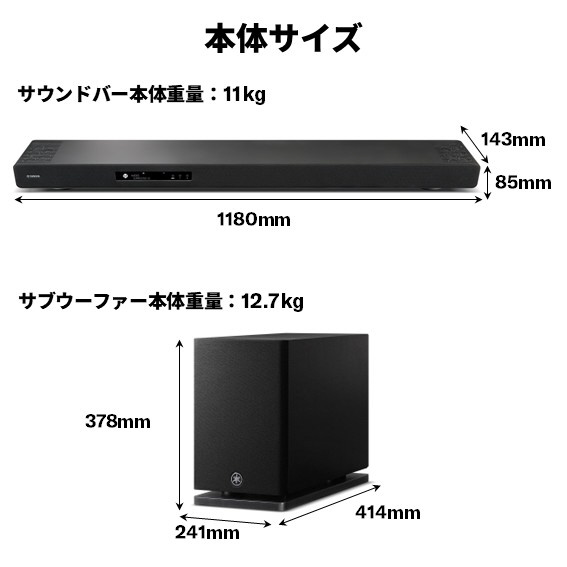 本体重量 センターユニット11kg、サブウーファー12.7kg
