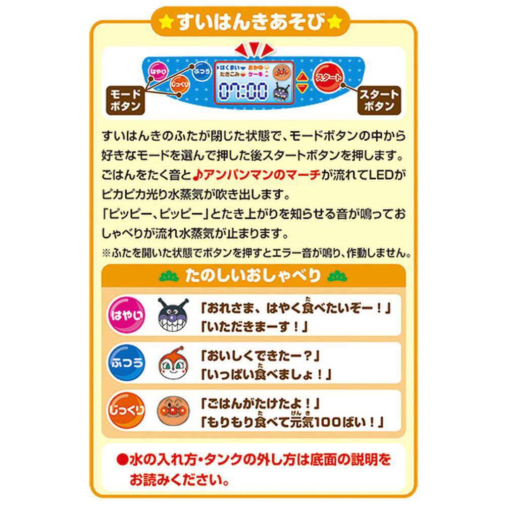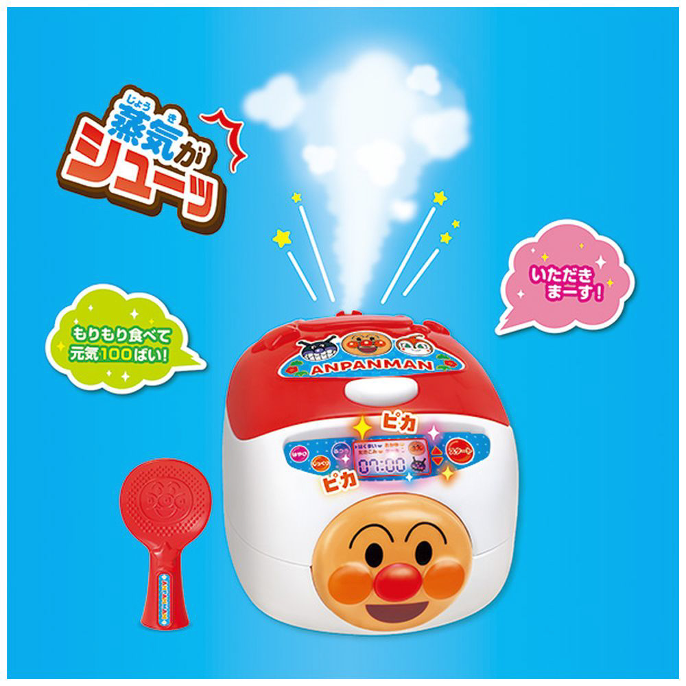 LEDがピカピカ光り、ご飯を炊く音と「アンパンマンのマーチ」が流れ、水蒸気がシューッと吹き出します。