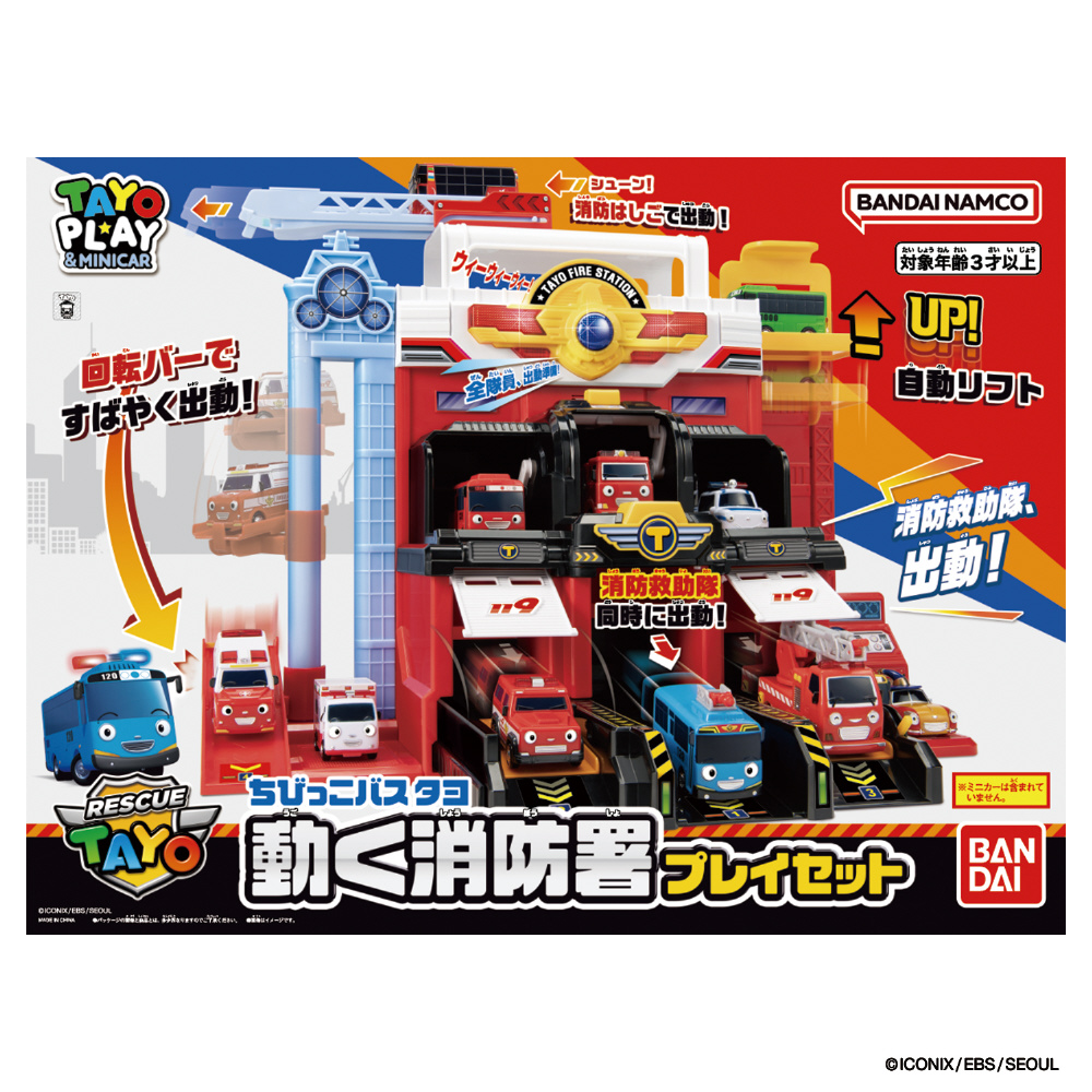 『ちびっこバス タヨ』から、「動く消防署」がプレイセットになって登場!