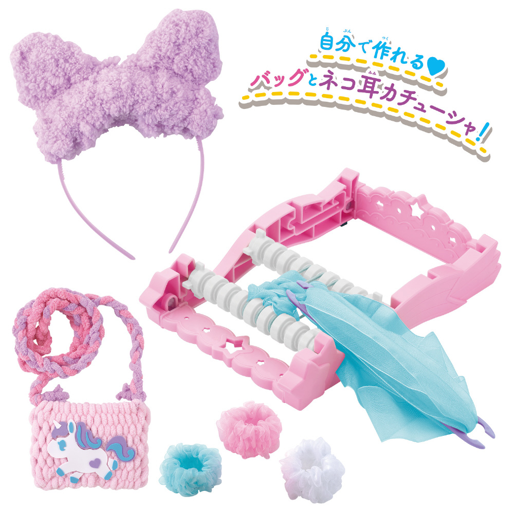 いろいろな素材で簡単にあみものが楽しめるメイキングトイ「アメールアメール」よりネコ耳カチューシャ&バッグが作れるDXセットが登場!