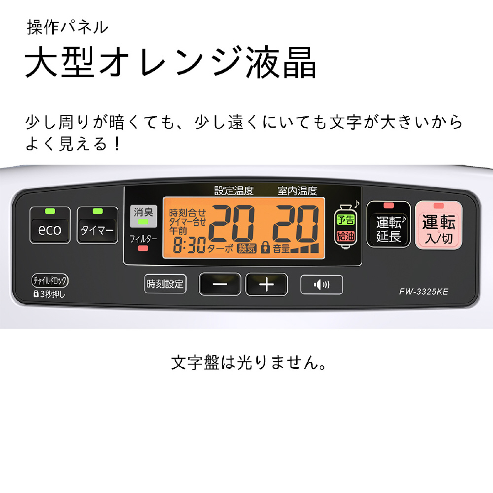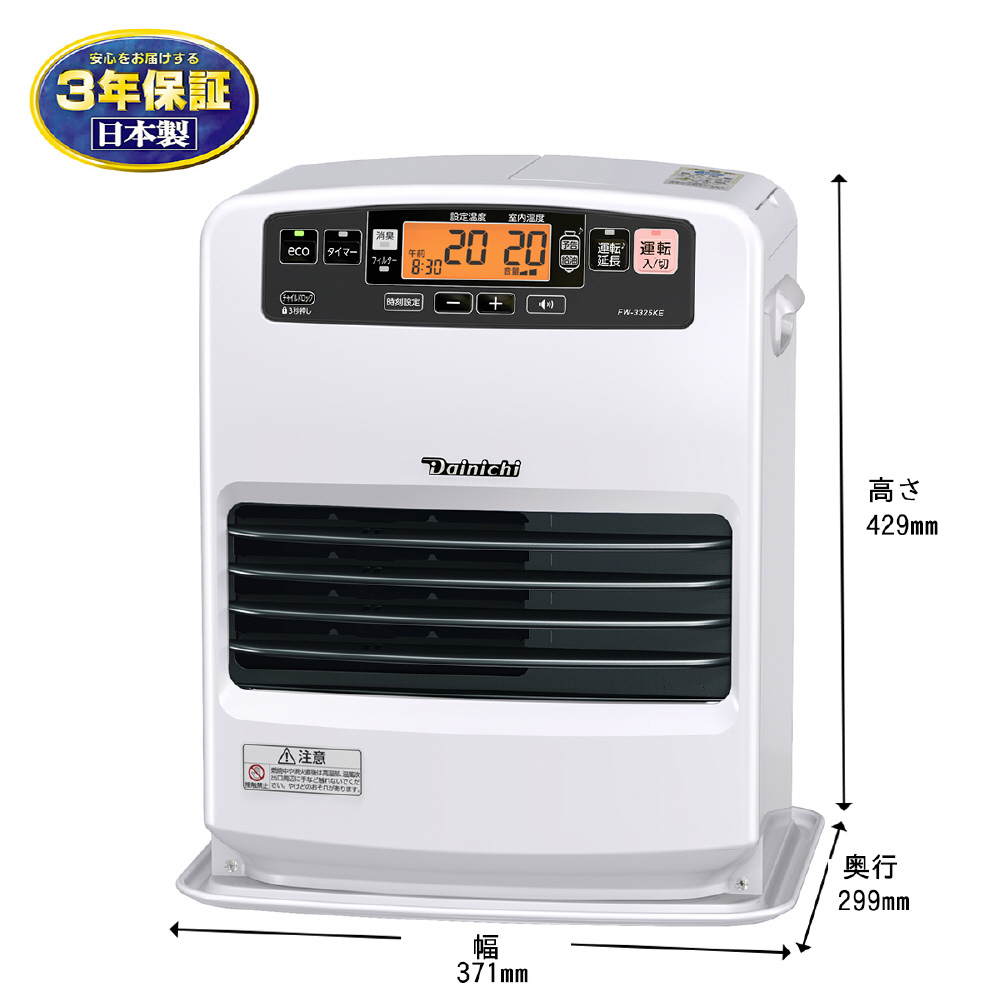 安全機能 不完全燃焼防止装置、対震自動消火装置、停電安全装置、過熱防止装置、燃焼制御装置、点火安全装置、消し忘れ消火装置、気密油タンクの給油時消火装置、室温異常高温防止装置