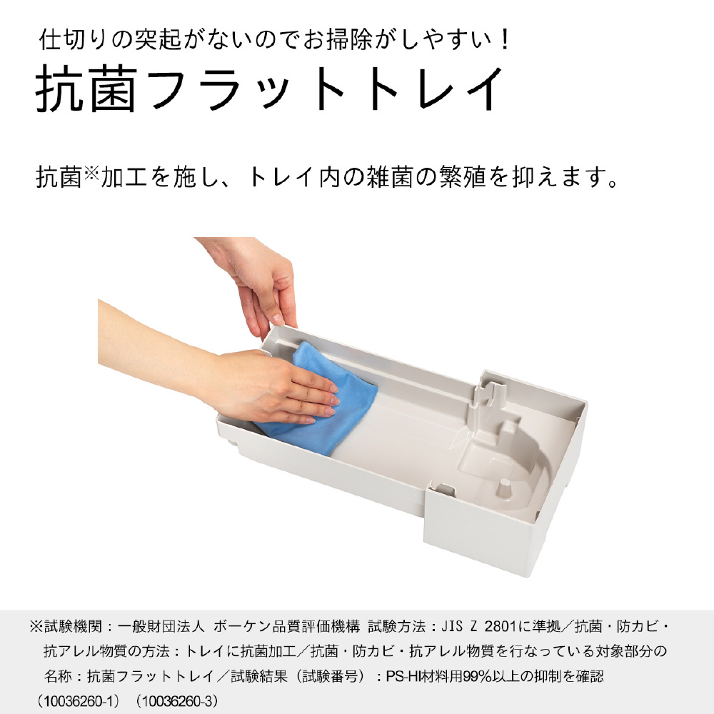 2.トレイ内の雑菌の繁殖を抑える抗菌フラットトレイ。