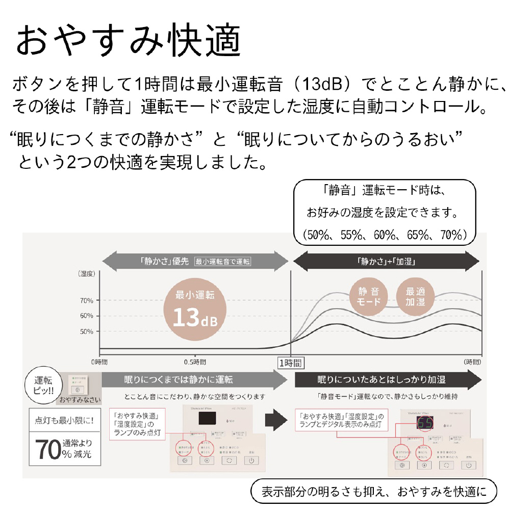 「眠りにつくまでの静かさ」と「眠りについてからのうるおい」という2つの快適を実現しました。