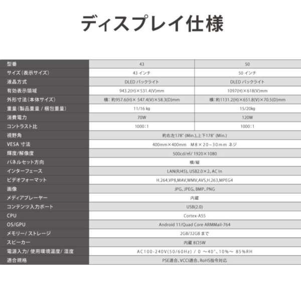 デジタルサイネージ Bタイプ dsns-b-43-2k [43型 /フルHD(1920×1080) /ワイド]