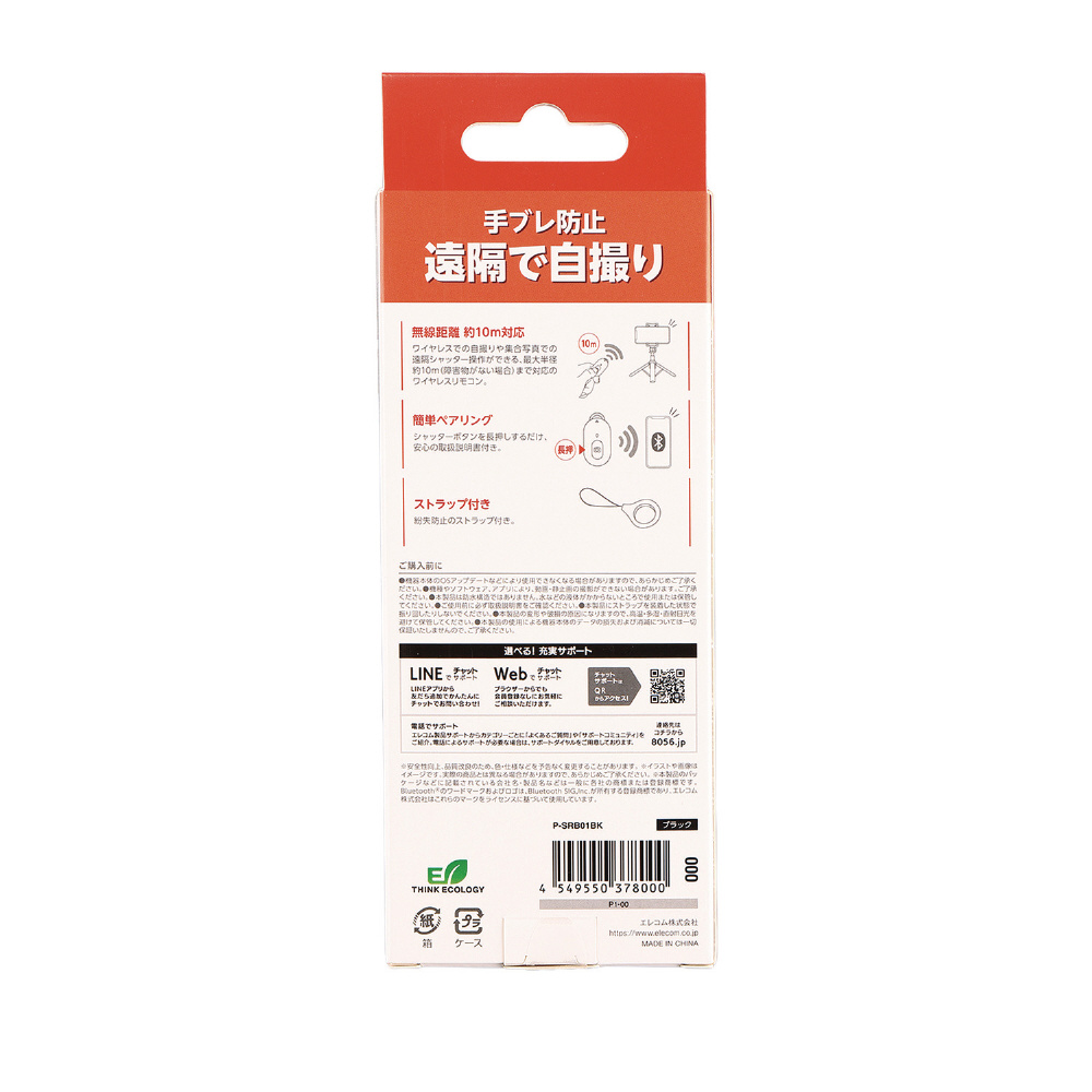 Bluetooth 5.0 リモコン ワイヤレス リモートシャッター スマホ対応 ストラップ付き ブラック P-SRB01BK