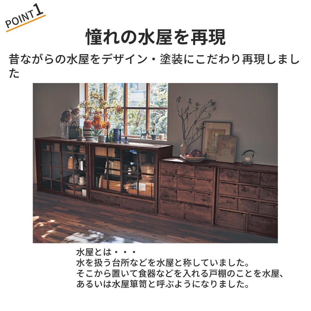 あたらしくて懐かしい 水屋箪笥風引戸キャビネット タイプ/幅(cm) D/110