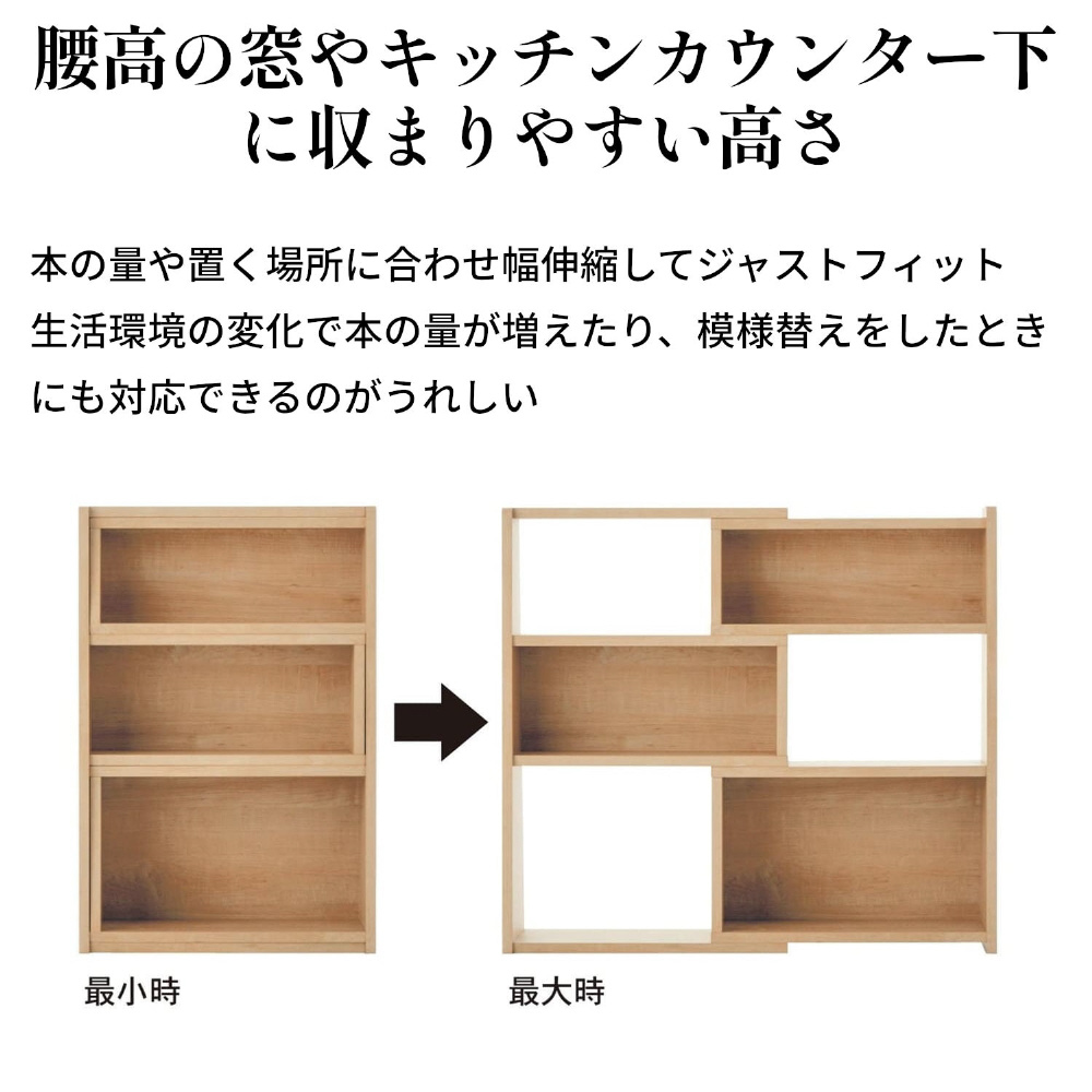 伸縮できる腰高本棚 タイプ/幅(cm) B/90〜150 ライトナチュラル