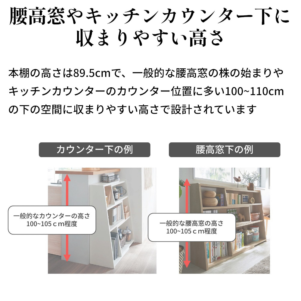 ■腰高窓やキッチンカウンターの下に収まりやすい高さ