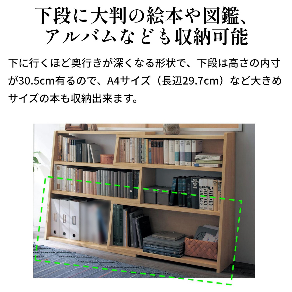 ■下段には大判の絵本や図鑑、アルバムなども収納可能