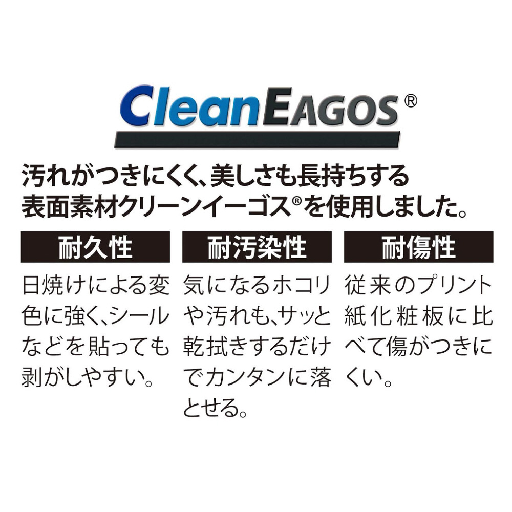 ●主材/(ホワイト)強化プリント紙化粧繊維板(汚れ防止加工)、(ライトナチュラル・ダークブラウン)プリント紙化粧繊維板