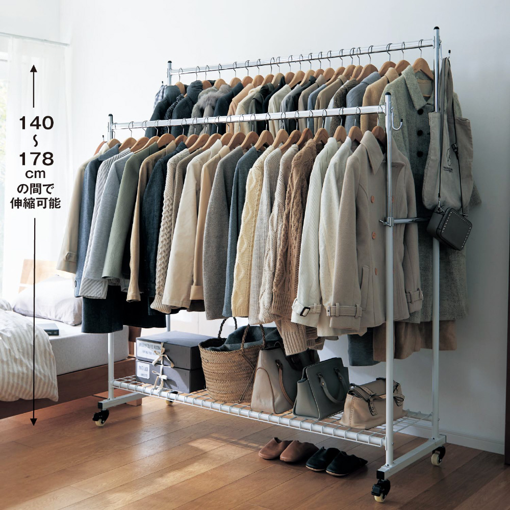 ■ハンガーバーは高さ最大178cmなので、丈の長いものも掛けられる