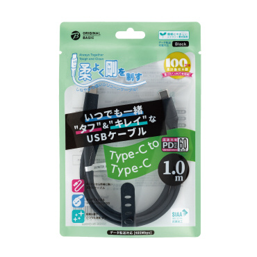 PD対応 Type-C to Type-Cケーブル 1m シリコーン素材 やわらかい 抗菌仕様 SIAA認証 ブラック OB-UCS2CC100-K [USB-A ⇔ USB-C]