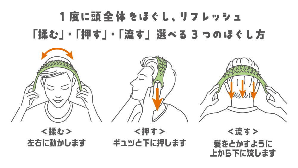 持ち手付きでさらに使いやすく、頭皮マッサージが快適に!