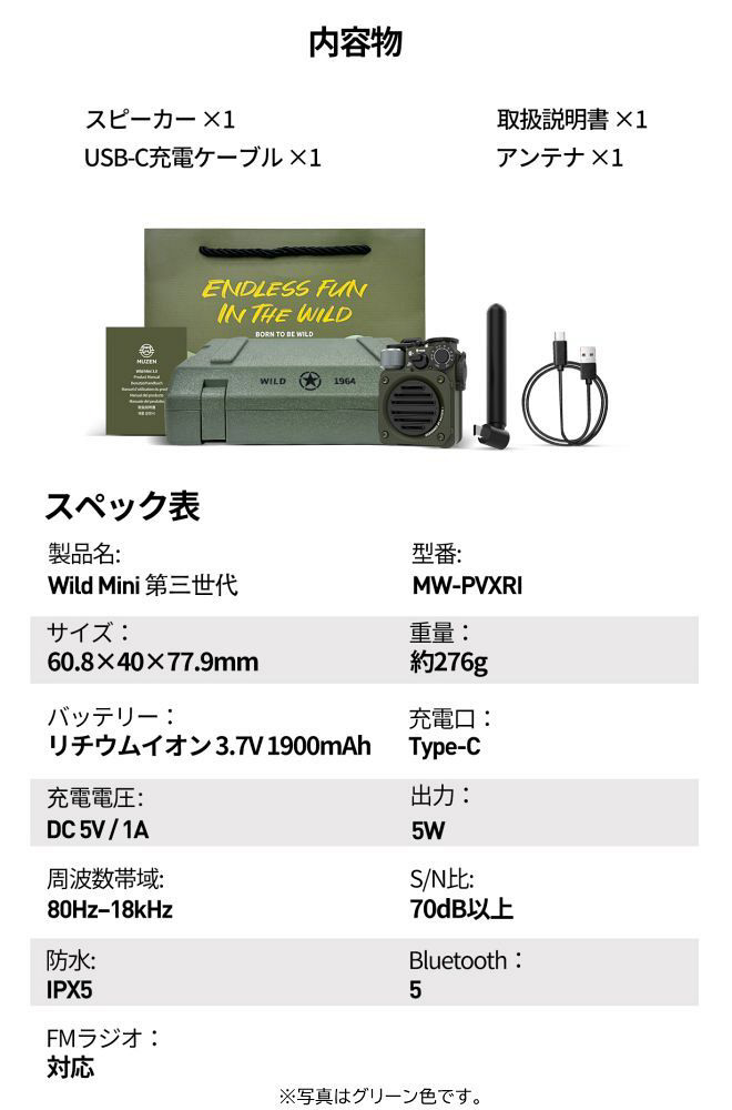 ブルートゥーススピーカー Wild Mini 第3世代 ブラック MW-PVXI3B [防水 /Bluetooth対応]