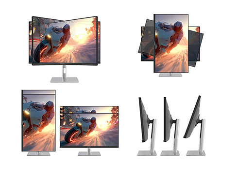 ■高さ調整が可能な昇降式多機能スタンドを搭載、最大145mmの範囲(横置時)で最適な高さに画面を調整可能です。また縦画面として使用出来るピボット(回転)機能にも対応します。スイーベル(首振り)機能は、左右各15°の範囲で動かせます。