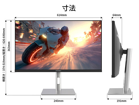 27インチのIPSパネルを搭載した、WQHD(2560x1440)解像度のゲーミングモニターです。