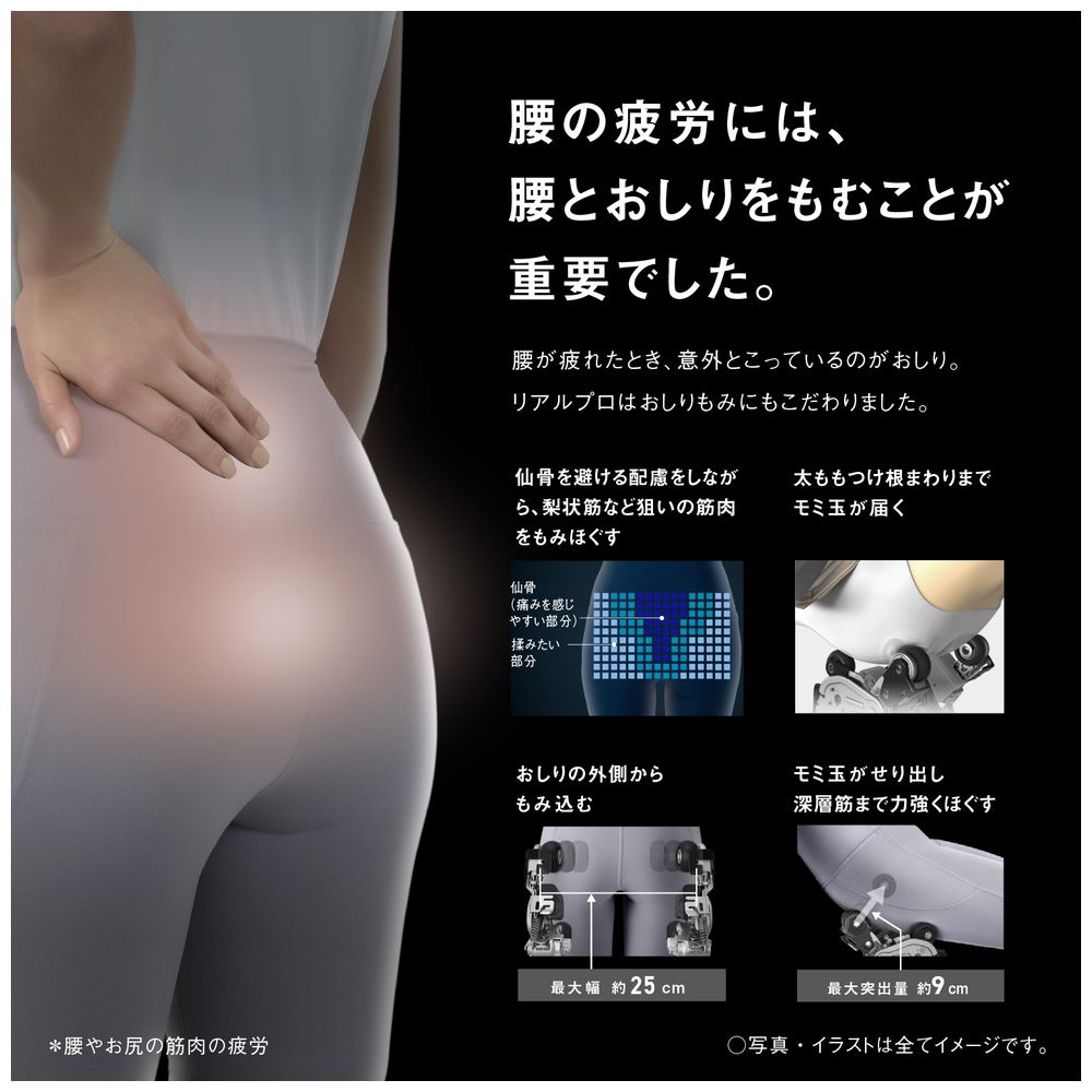 ・腰・おしりのマッサージ: モミ玉の繊細な動きで腰まわり、おしり全体をもみほぐし、しつこい腰、おしりの疲れまでラクに。