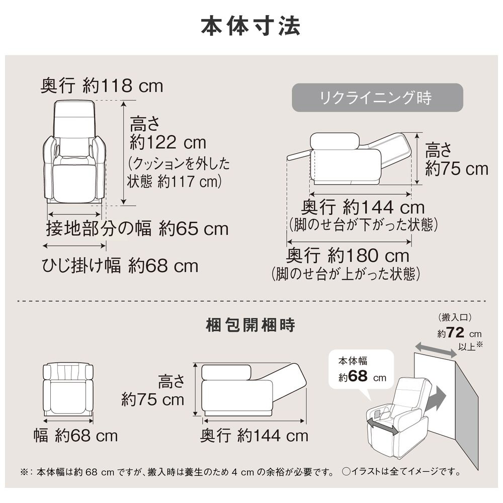 ※2 本体幅は約68cmですが、搬入時は養生のため4cmの余裕が必要です。