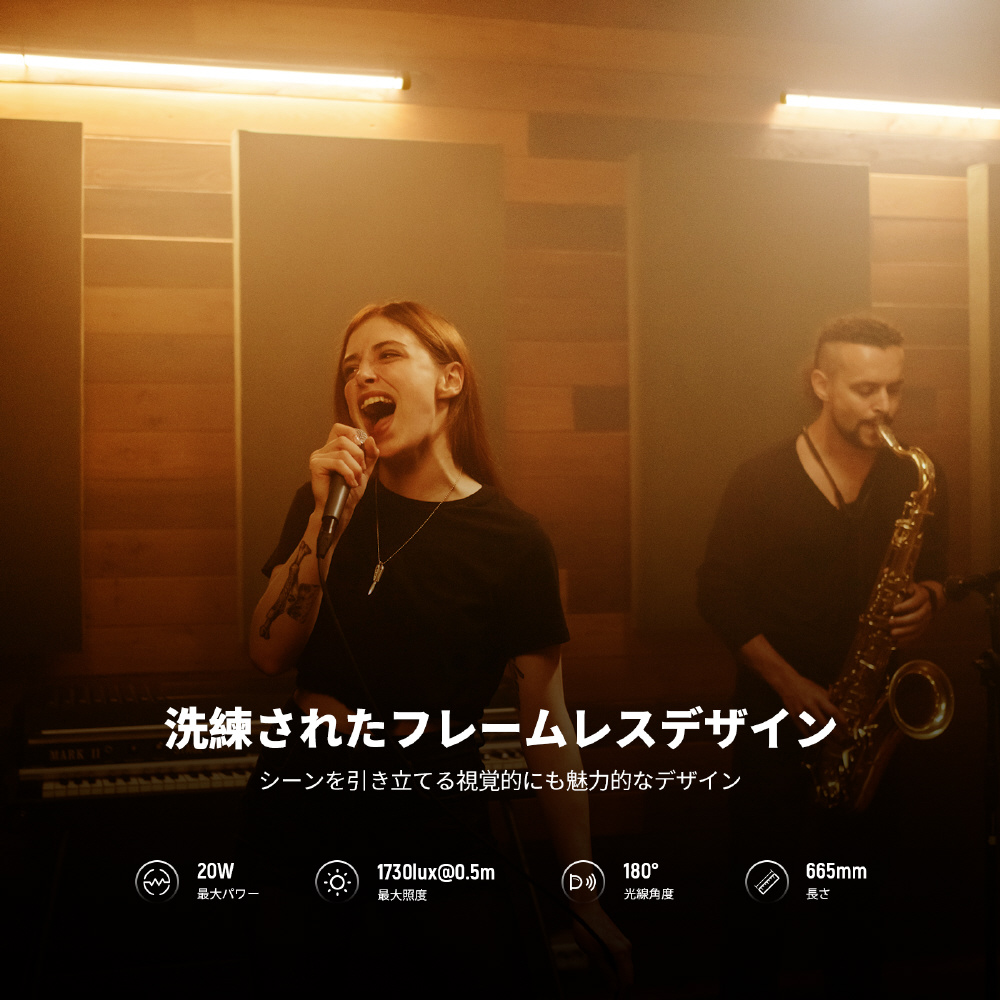 物理的な制御ボタンに加えて、NEEWER APPでライトバーをワイヤレスで制御したり、2...4.Gモードに入って遠隔制御や撮影照明の同時グループ制御を行ったりすることができます。プロのユーザーの場合は、DMX5.1.2.. 8.bit経由でライトを制御することもできます。ライトは1./4.ネジでライトスタンドに取り付けるか、付属のスチールワイヤーでクロスバーに吊るすこともできます。