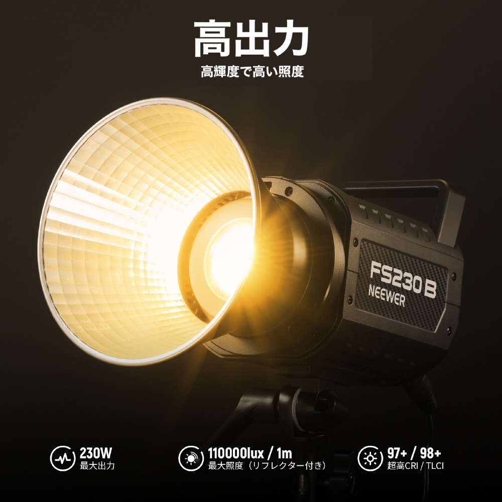 高品質COB LEDを搭載した2..3.0W明るいビデオライトです。最大1.1.0000lux/1.mの強力光束で、ポートレート撮影、動画制作、ライブ配信などの撮影に最適です。