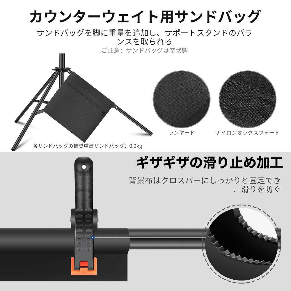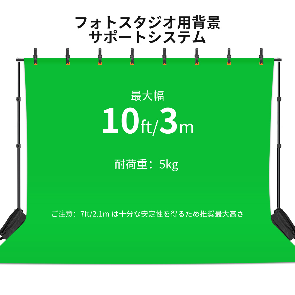 いつでもどこでも撮影スタジオへ、背景サポートシステムセット。調整可能な高さ(70cm-2.1m)と幅(1.5-3m)を備えた背景サポートシステム。