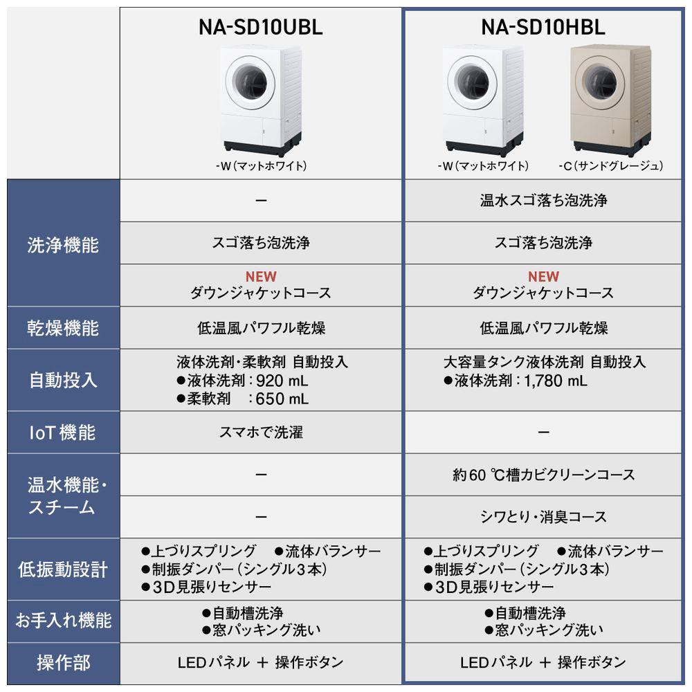 ドラム式洗濯乾燥機 SDシリーズ Hタイプ マットホワイト NA-SD10HBL-W [洗濯10.0kg /乾燥5.0kg /ヒーター乾燥(排気タイプ) /左開き]