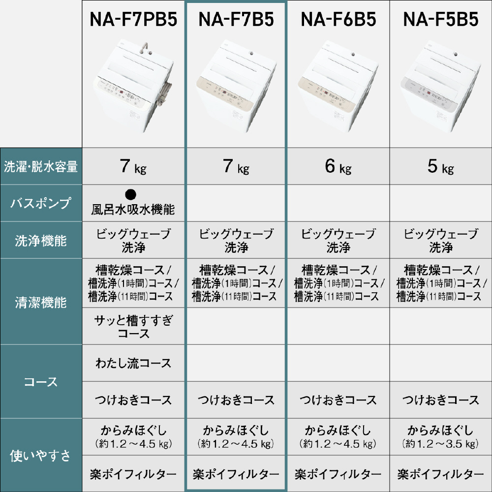 全自動洗濯機 Fシリーズ ライトベージュ NA-F7B5-C [洗濯7.0kg /乾燥機能無 /上開き]