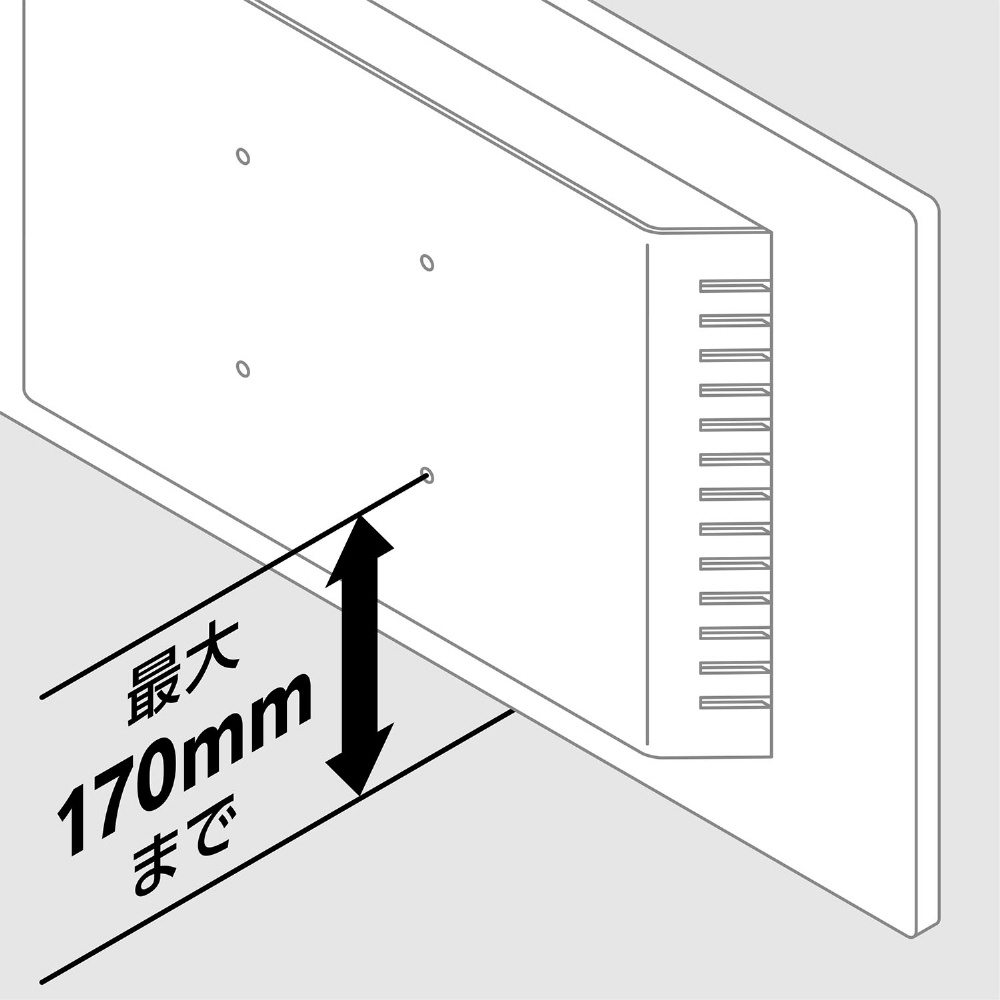 ※下側VESA穴の中心からモニター下端までの長さが170mm以内のモニター。