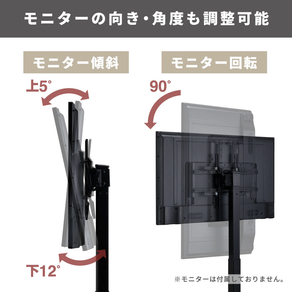 [可動範囲]モニター傾斜 上5°/下12°、モニター回転 90°