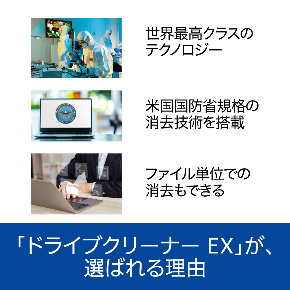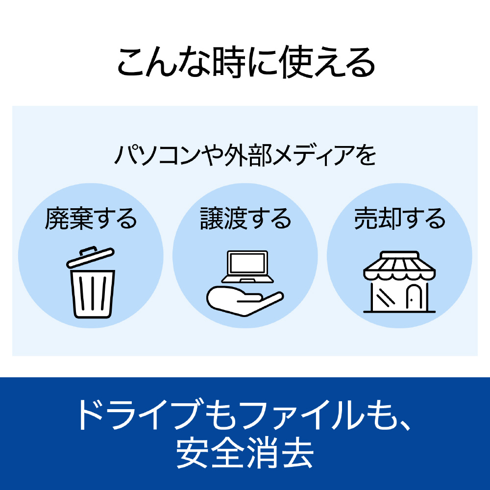 削除済のデータが復元されてしまう可能性をなくすために、徹底的にデータを消去できます。