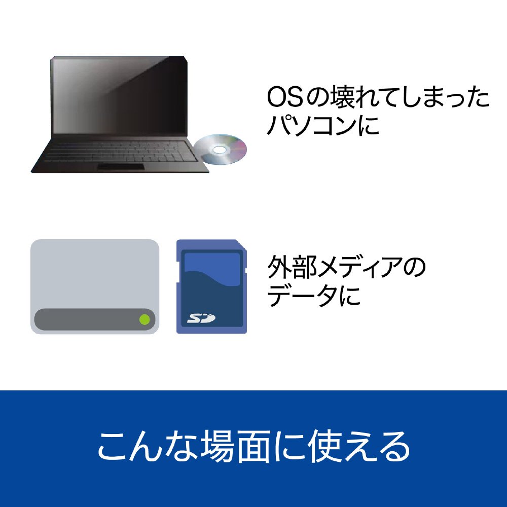 Windowsが起動しないパソコンや外付けハードディスク、SDカードのデータも消去できます。