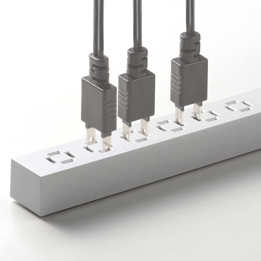 ●縦横どちらの向きでもプラグを差し込める独自設計。間のスペースも有効活用でき、自由度が高いタップです。