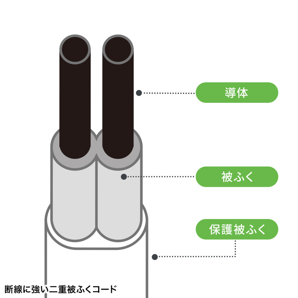 ●1.5mのVFF保護被ふくコードを採用。耐久性が高く、安心して使用できます。
