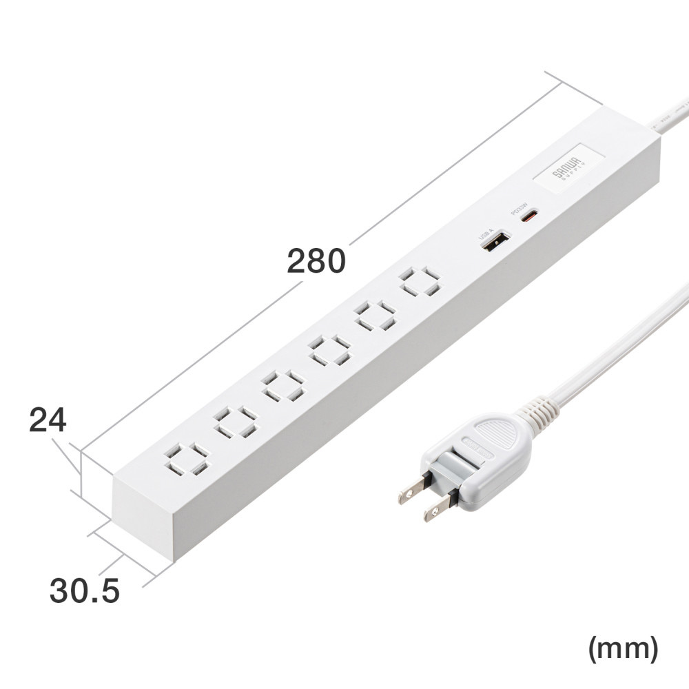 スリムタップ(AC6個口・A1+C1・PD33W) ホワイト TAP-SLIM6UC-3W [3.0m /6個口 /1ポート]