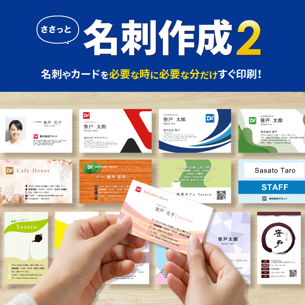有名な用紙メーカーの名刺用紙を収録。名刺サイズの用紙にも対応しています。