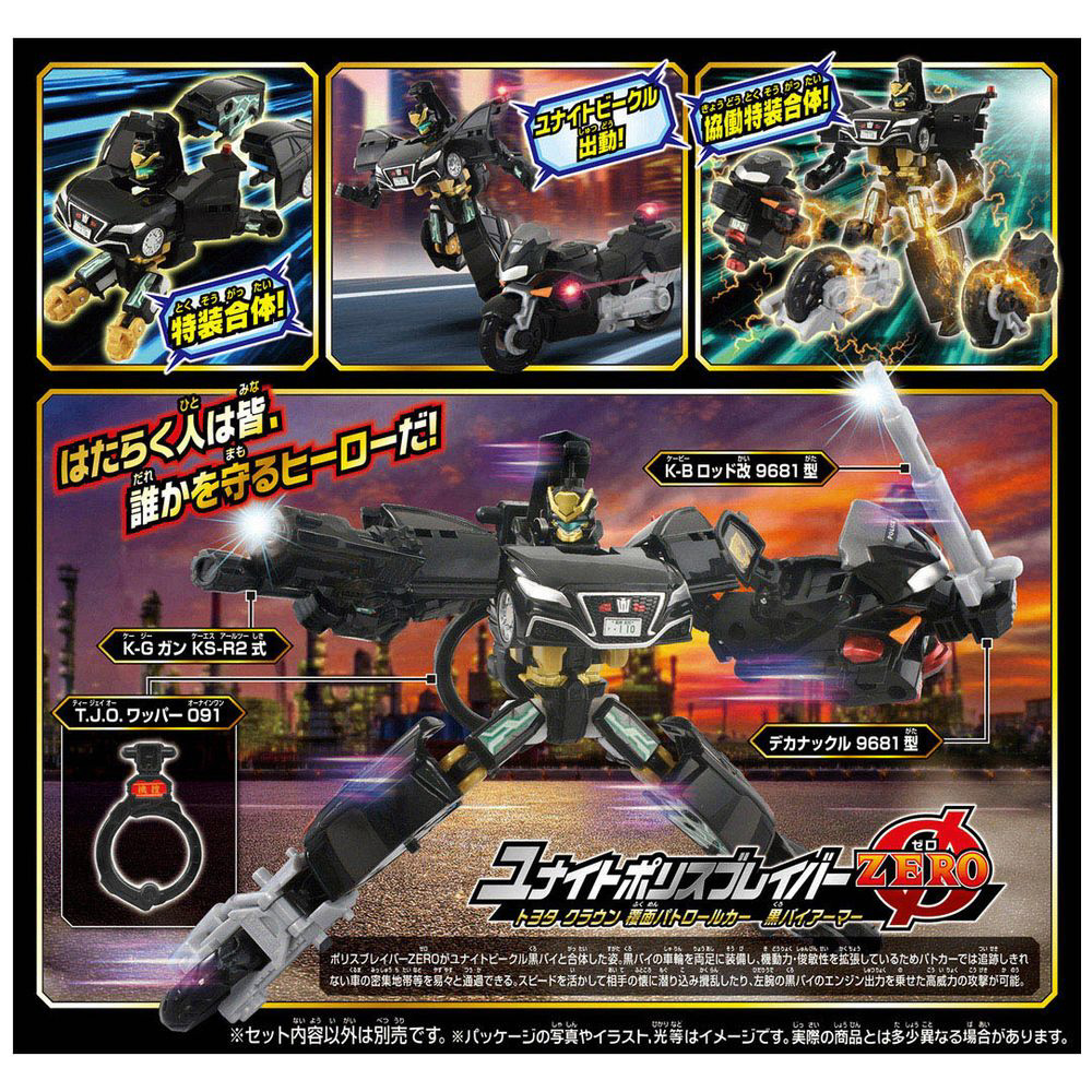 「ユナイトポリスブレイバーZERO トヨタ クラウン 覆面パトロールカー 黒バイアーマー」が完成する合体セットが登場!